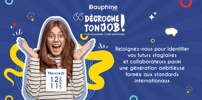 Depuis plus de dix ans, le Forum Entreprises de Dauphine Tunis crée chaque année un pont entre les recruteurs à la recherche de jeunes talents et les étudiants en quête d’un stage de fin d’études ou d’un premier emploi.