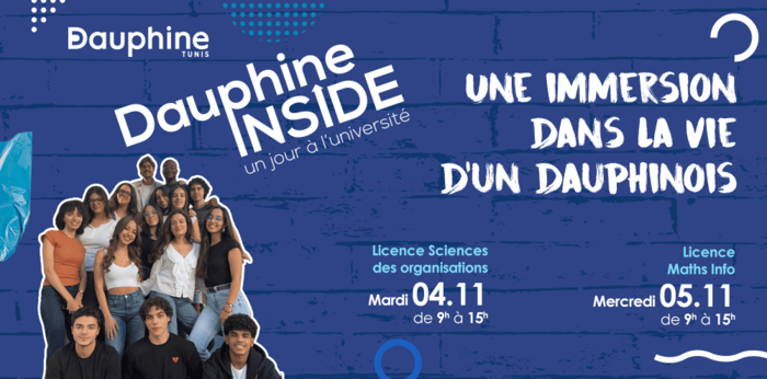 Une journée dédiée aux deux Licences du Campus tunisien de l’Université Paris Dauphine-PSL : la Licence Sciences des organisations et la Licence Mathématiques et Informatique pour la Décision, le mardi et mercredi 4 et 5 novembre de 9h à 15h.